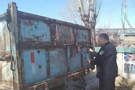 肇東躍進(jìn)派出所為轄區(qū)農(nóng)用車輛粘貼反光標(biāo)識(shí)