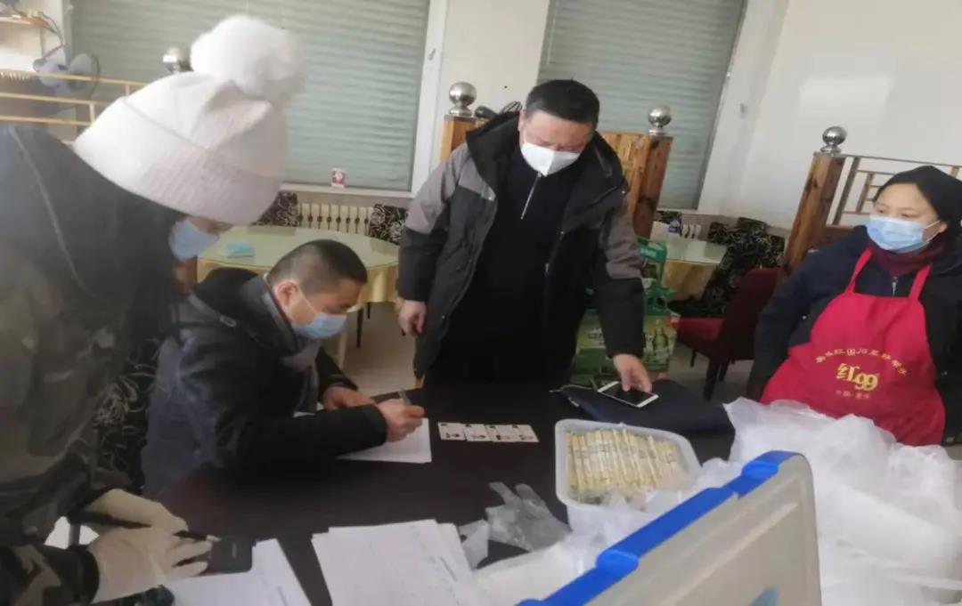 上圖為工作人員來到為隔離人員供餐的宋站鎮(zhèn)鑫德緣飯店,對從業(yè)人員身份信息一一核對并詳細登記。