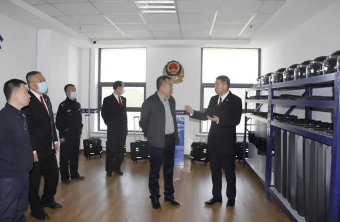 劉昭業(yè)一行實(shí)地察看了肇東法院訴訟服務(wù)中心、多元解紛中心、警用文化長廊、法警黨建活動室、法警辦公室、警用裝備庫、科技法庭、羈押室、掃黑除惡辦公室等場所。