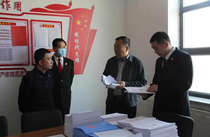 在肇東法院隊伍教育整頓領(lǐng)導(dǎo)小組辦公室檢查指導(dǎo)中, 劉昭業(yè)一行詳細(xì)聽取了黨組書記、院長王鐵軍關(guān)于隊伍教育整頓工作的匯報。仔細(xì)翻閱了我院隊伍教育整頓工作的相關(guān)材料,逐項查閱了隊伍教育整頓宣傳情況、學(xué)習(xí)教育日程安排、日常工作臺賬等材料,逐項查閱了我院隊伍教育整頓工作開展情況,并對肇東法院充分利用資源,營造向社會正面宣傳、開門搞教育整頓的濃厚氛圍給予肯定。