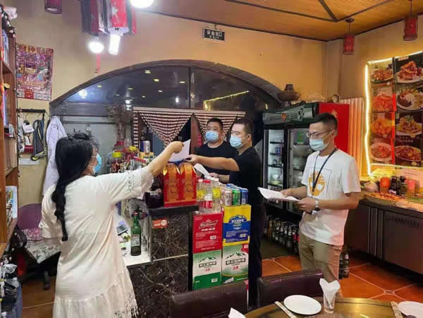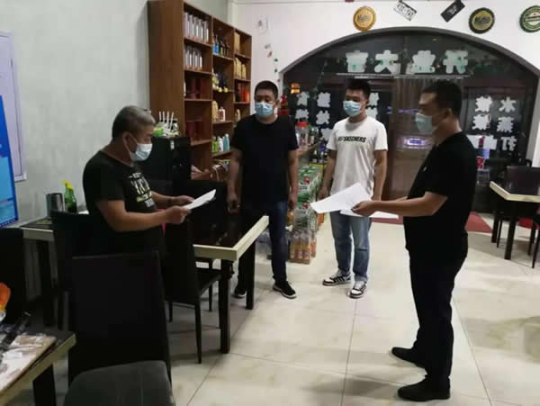 下午13時,我與志州對轄區(qū)2家大型餐飲場所進行了日常巡查,局里負責督導的兩位同志就趕到啦。我們4個人一起投入疫情防控工作中。