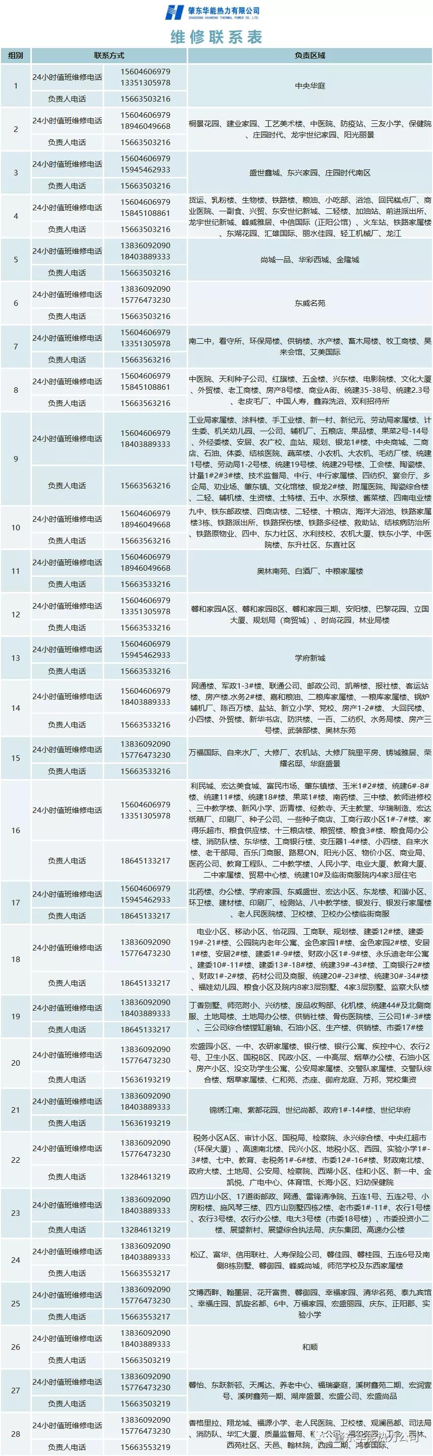 肇東華能公布肇東各小區(qū)24小時維修服務(wù)電話!