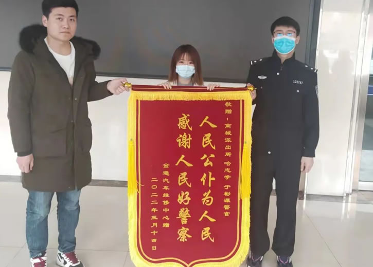 近日,肇東市七道街居民韓女士將一面印有“人民公仆為人民、感謝人民好警察”的錦旗,贈予南城派出所的民警,以表達民警為其找回失物,挽回數千元經濟損失的感激之情。