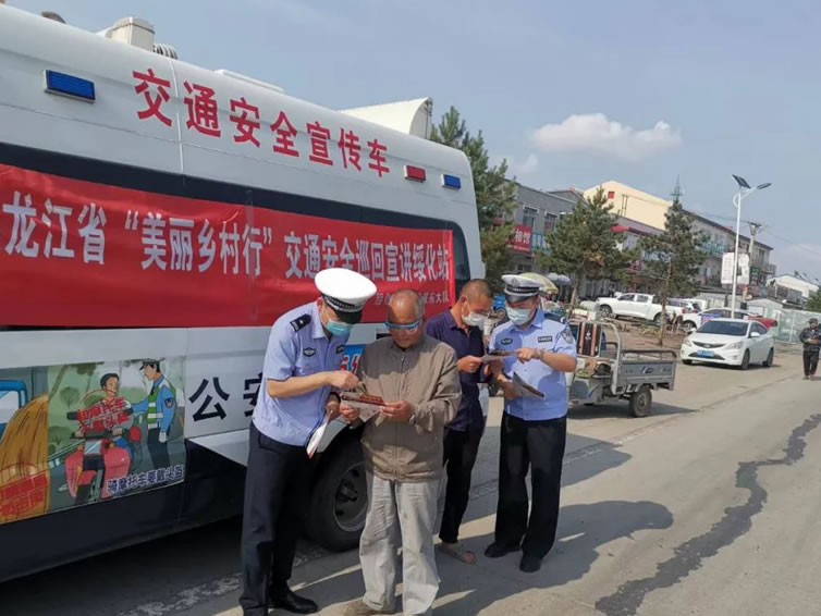 為深入推進道路交通事故預防“減量控大”和“核心使命-2022系列戰(zhàn)役”工作,進一步加強農(nóng)村地區(qū)群眾交通安全意識、法律意識、文明意識,全力預防交通事故發(fā)生,切實保障人民群眾利益,6月14日,肇東市公安局交警大隊組織民輔警走進轄區(qū)太平鄉(xiāng)" />