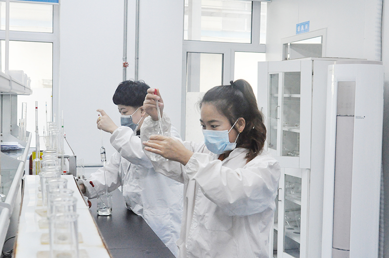 3月27日,肇東星湖生物科技有限公司技術(shù)工人在化驗(yàn)室檢測(cè)產(chǎn)品。