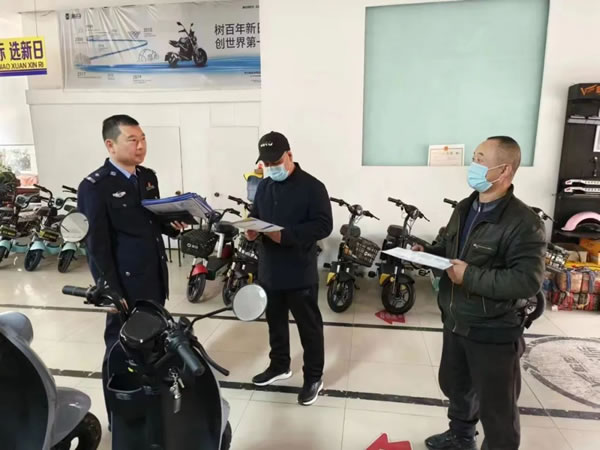 在經(jīng)銷商鋪,民警對(duì)電動(dòng)車經(jīng)銷商應(yīng)履行的責(zé)任、義務(wù)和消費(fèi)者享有的權(quán)利等方面,對(duì)《黑龍江省電動(dòng)車管理?xiàng)l例》進(jìn)行了詳細(xì)解讀,要求各電動(dòng)車經(jīng)銷商在銷售電動(dòng)車時(shí)必須依法向消費(fèi)者提供購(gòu)車發(fā)票、產(chǎn)品合格證,并告知產(chǎn)品特征,從銷售環(huán)節(jié)上杜絕違規(guī)電動(dòng)車上路行駛。