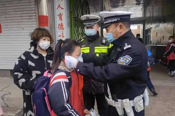 城鎮(zhèn)一中隊轄區(qū)內有三所中小學,在保證其他工作高效高質的前提下,他把大部分精力用到了護學上。他常說,孩子是國家的希望,是民族的未來,保護好孩子,是人民警察的重要職責;交通安全教育在孩子階段也是最有效、最長效的。每到上學放學時,他一定出現(xiàn)在學校門前,無論寒暑雨雪,大手拉小手,成了校園一道亮麗的風景,得到了老師和學生及家長的一致贊譽。張曉偉時刻關注校園周邊的交通安全問題,校園門前地勢狹窄,人車混行不安全,他報請大隊增加隔離護欄;高峰時間校車無法就近停放,孩子們上下車不安全,他請示大隊規(guī)劃出了校車專用停車位;怕孩子放學分散出校門不安全,他和老師一起組織學生在校內列隊,由他護送出校門、過街。下雪,他幫助學校清理入校的通道;下雨,他背著、扶著孩子過水溝;學生放學忘帶錢做不了公交車,他給孩子買車票。有一次一名學生突發(fā)疾病,他用自己的私家車及時將孩子送到醫(yī)院;有一名學生腿部手術行走不便,他每天背著進教室,直到孩子能自己行走。每年都有學生升入上級學校,張曉偉始終守護在校門前,他成了孩子們最可信賴的警察叔叔。