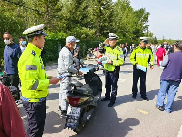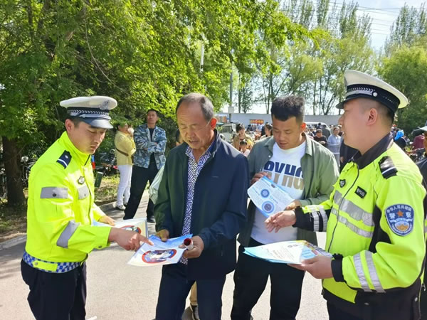 為深入鞏固道路交通事故預(yù)防“減量控大”工作成果,進一步做好“春雷行動”宣傳推廣工作,著力提升城鄉(xiāng)居民交通安全、交通守法和交通文明出行意識,最大限度預(yù)防和減少交通事故發(fā)生。5月24日,肇東市公安交警大隊民輔警利用“廟會”人氣旺的機會,大力開展交通安全宣傳活動。