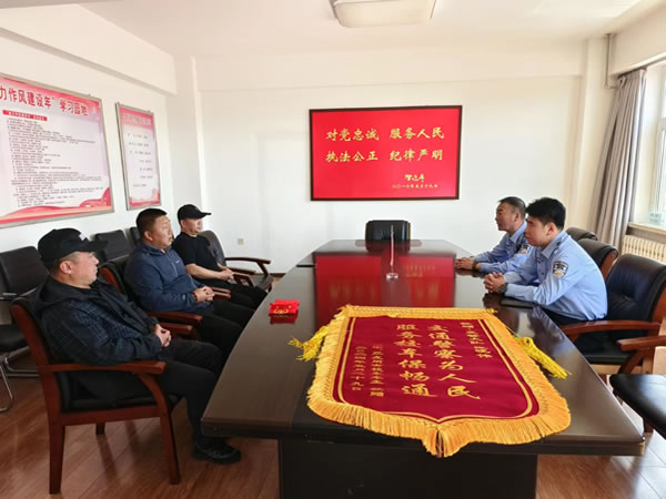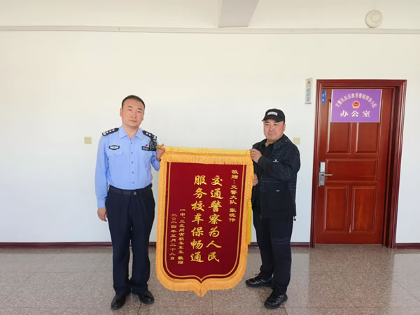 2024年6月4日上午,三位校車車主將一面寫有“交通警察為人民 服務校車保暢通”的錦旗送到肇東市公安局交通警察大隊,代表一中、三中所有校車車主感謝大隊民警想車主之所想、急車主之所急,積極主動幫助校車車主解決停車難問題。