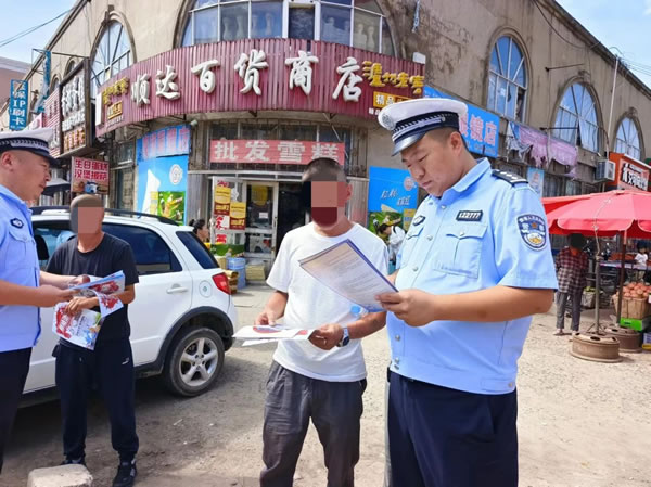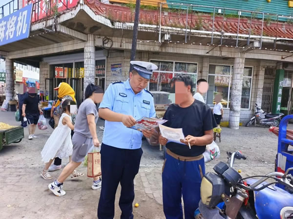 在昌五鎮(zhèn)中心商業(yè)區(qū),這里聚集了周邊鄉(xiāng)鎮(zhèn)眾多村屯群眾在此購物、游玩,人流、車流不息。宣傳民警深入到集市、商場等人員密集區(qū)域,結(jié)合當前交通安全宣傳工作重點活動實際,通過大篷車巡回宣講、懸掛宣傳條幅、發(fā)放交通安全宣傳資料等多種宣傳方式,與群眾面對面溝通,、解答群眾關于交通法律法規(guī)方面的疑問,向廣大農(nóng)民群眾宣傳“一盔一帶”的重要性和農(nóng)用車違法載人、客貨混載、三超一疲勞、無牌無證、酒后駕駛等交通違法行為的危害性。宣傳講解《黑龍江省電動車管理條例》相關內(nèi)容,教育引導農(nóng)民群眾要遵守交通安全法律法規(guī),提高交通安全意識,自覺抵制各類交通違法行為。爭做文明出行的踐行人和傳播者。