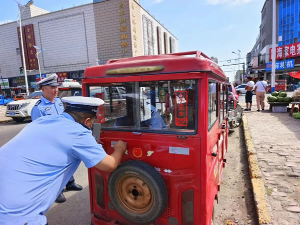 同時,為沒有粘貼反光標識和反光標識殘缺、陳舊的農(nóng)用車輛、三輪車等免費粘貼安全反光標識,提升車輛夜間通行安全系數(shù),為農(nóng)民朋友駕車出行提供安全保證,筑牢道路交通安全防線。