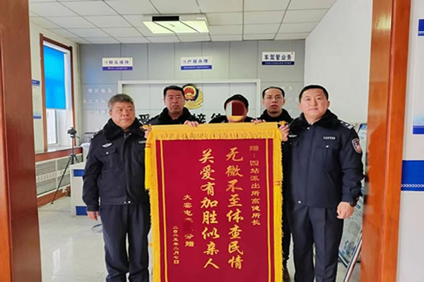 近日,四站鎮(zhèn)菜園子村李某將一面寫(xiě)有“無(wú)微不至體察民情、關(guān)愛(ài)有加勝似親人”的錦旗送到了四站派出所所長(zhǎng)高劍的手中,以表達(dá)對(duì)高劍所長(zhǎng)及派出所全體工作人員的感激之情。