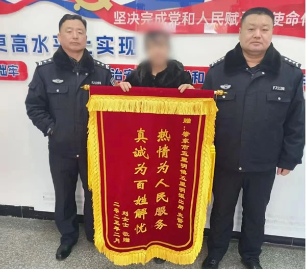 近日,哈市居民劉女士將一個印有“熱情為人民服務(wù),真誠為百姓解憂”的錦旗送到五里明派出所民輔警手中,以表達(dá)人民警察幫助她脫困時伸出的援助之手。