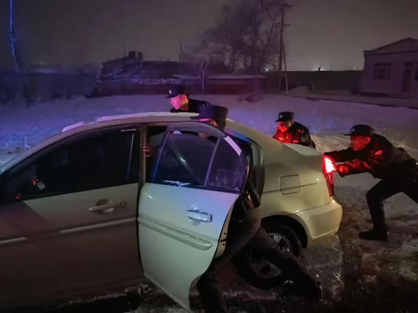 肇東公安:冰天雪地車被困 新警施救暖人心