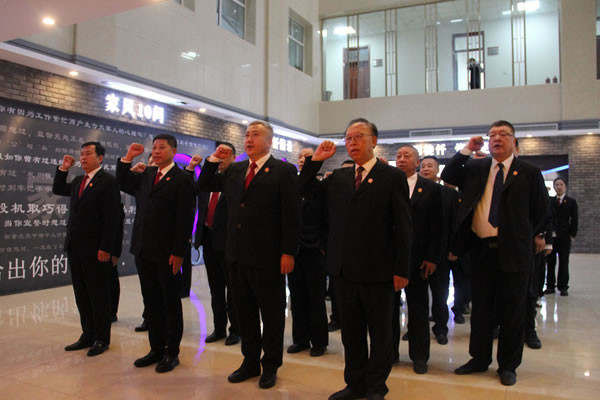 參觀最后,全體干警在黨旗前莊嚴(yán)宣誓,重溫入黨誓詞。