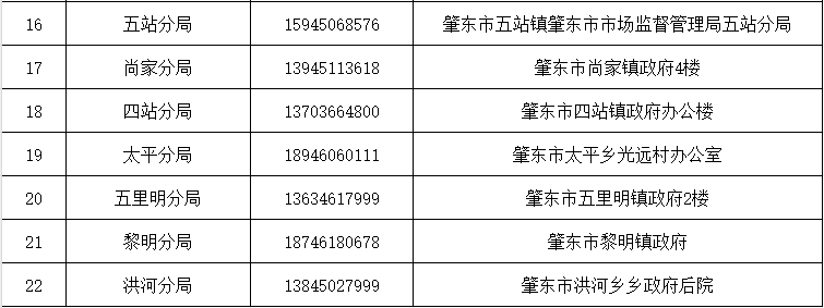 為進(jìn)一步方便廣大市民辦理業(yè)務(wù)、咨詢政策以及反映問(wèn)題,現(xiàn)將我市市場(chǎng)監(jiān)督管理局各派出機(jī)構(gòu)的地址及聯(lián)系方式公告如下: