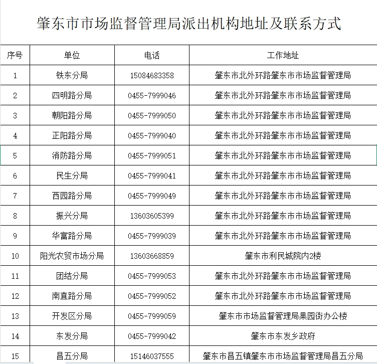 關(guān)于肇東市市場(chǎng)監(jiān)督管理局派出機(jī)構(gòu)地址及聯(lián)系方式的公告