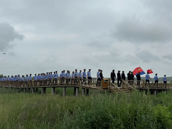 雨后的肇岳山國(guó)家濕地公園空氣澄澈,104名黨員民警與青年民警代表列隊(duì)整齊,踏上登山征程。他們?cè)谇遘皻庀⒅懈惺茏匀宦蓜?dòng),借山林之翠釋放壓力,重塑身心活力。年輕黨員們腳步輕快,昂揚(yáng)斗志映襯出肇東公安的蓬勃生命力。此刻天色微變,細(xì)雨斜織,民警們踏雨而行,整齊的步伐敲擊大地。雨絲輕撫,潤(rùn)澤著“春苗”新警們,恰似成長(zhǎng)的甘霖,為公安事業(yè)注入生生不息的嶄新力量。