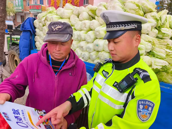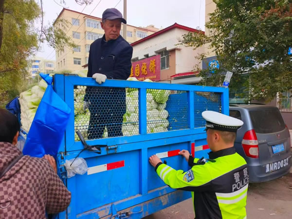 針對秋菜運輸車輛多為農(nóng)用車型、駕駛員交通安全意識相對薄弱的特點,交管民警們還化身“流動宣傳員”。在臨時?奎c,他們會主動遞上交通安全手冊,用通俗易懂的語言講解“不超載、不搶道、不疲勞駕駛”等注意事項;看到有的農(nóng)用車輛反光標識陳舊或破損,便及時給予補充粘貼,并不厭其煩地講解反光貼的重要作用。一句句樸實的叮囑,讓農(nóng)戶們感受到實實在在的關(guān)懷。