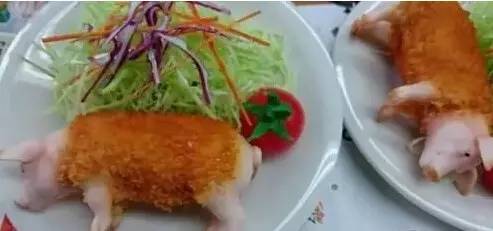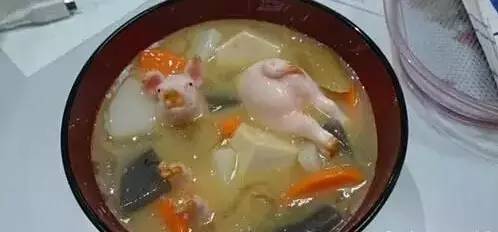 據(jù)報(bào)道,這些其實(shí)并不是真的豬,而是一個(gè)個(gè)制作逼真精細(xì)、由其他材料制成的仿制品。它們被烹制成所謂的“日式炸豬排”、“什錦湯”等料理,雖說構(gòu)思堪稱奇特,但大多數(shù)網(wǎng)友多反饋?zhàn)约罕弧皣樍艘惶,并紛紛表示難以接受。