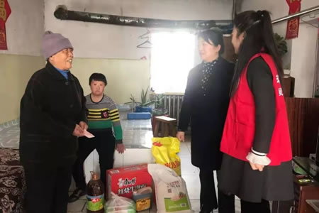 朝陽街道辦事處協(xié)調環(huán)文愛心志愿者服務隊慰問轄區(qū)貧困戶。